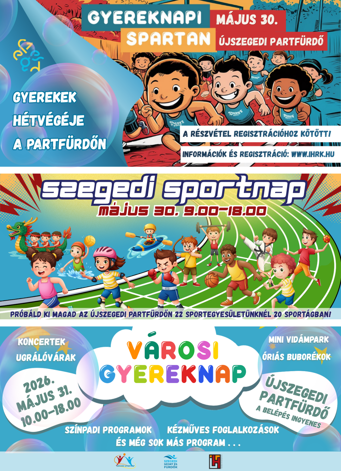 Egyéb Gyerekek Hétvégéje a Partfürdőn Az IH Rendezvényközpont és a Szegedi Sport és Fürdők Kft. közös szervezésében május 30-án és 31-én Gyerekek Hétvégéje a Partfürdőn. Tovább olvasom » 2026-04-27